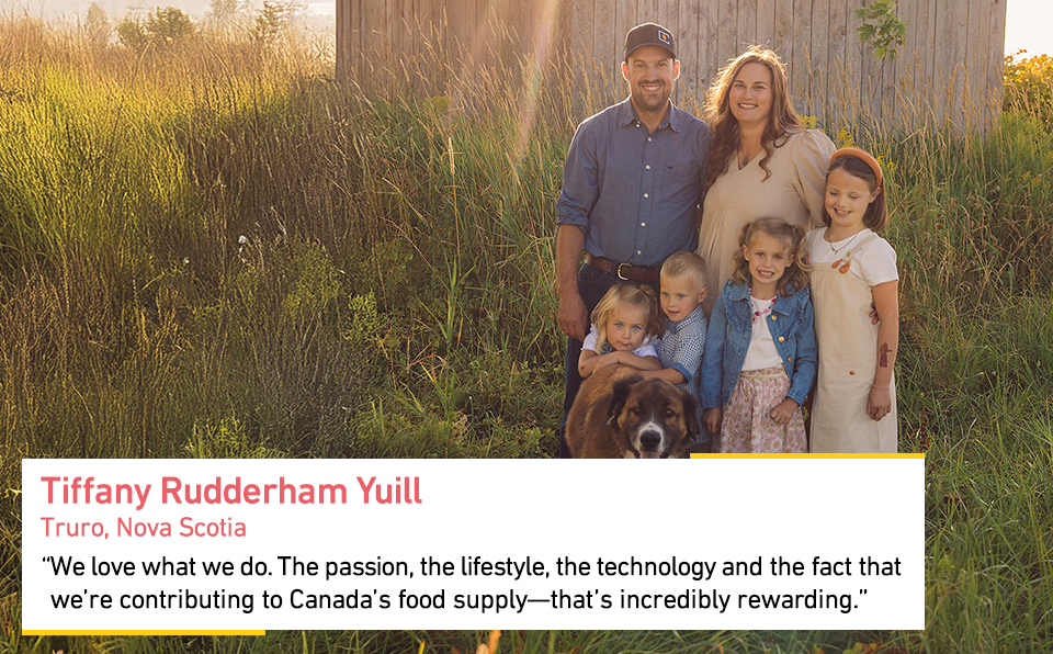 Tiffany swapped a career as a lab technician to follow her heart back to agriculture, establishing a first generation egg farm with her husband. Today, she is the driving force behind the operation, balancing full-time farming with work at a veterinary clinic and raising four young children. Taking this leap of faith was about building a meaningful future and contributing to Canada’s food security.